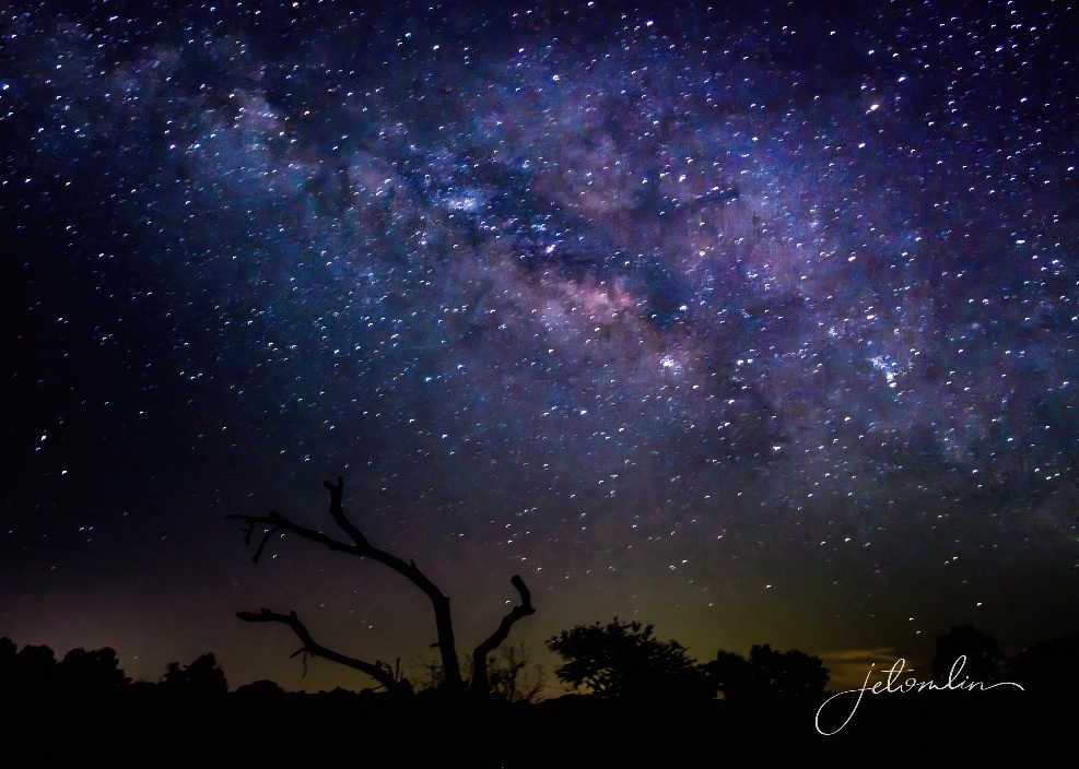 By now it was after 11pm and the Milky Way was rising above the tree line behind the campground. I took a few shots and then hiked to the scraggly tree I had scouted out earlier.
