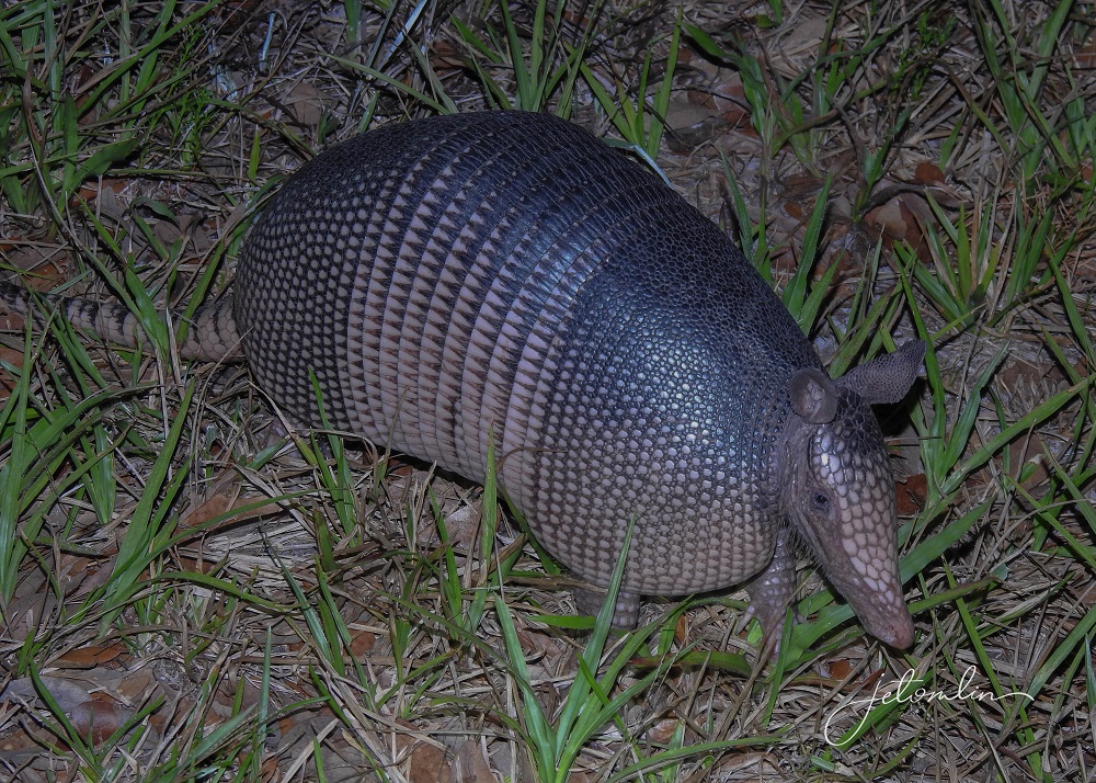 I heard more rustling in the bushes and suddenly out popped three armadillos! Armadillos are nearly blind and this one practically bumped into me as he scurried on his way.