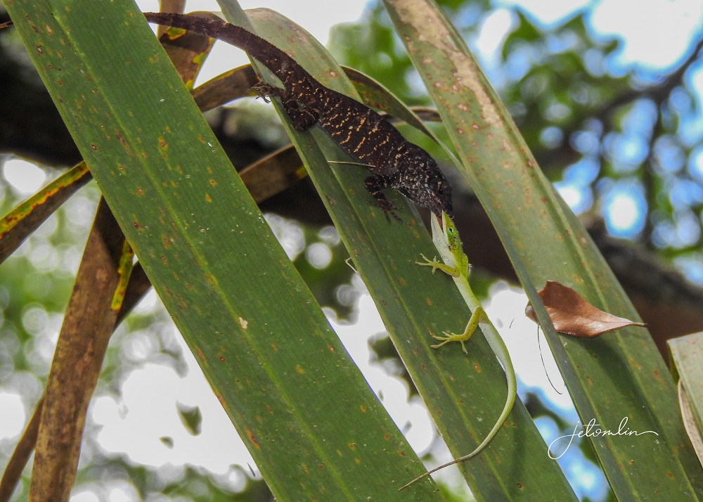 And two lizards in some sort of territorial war on a palm frond.