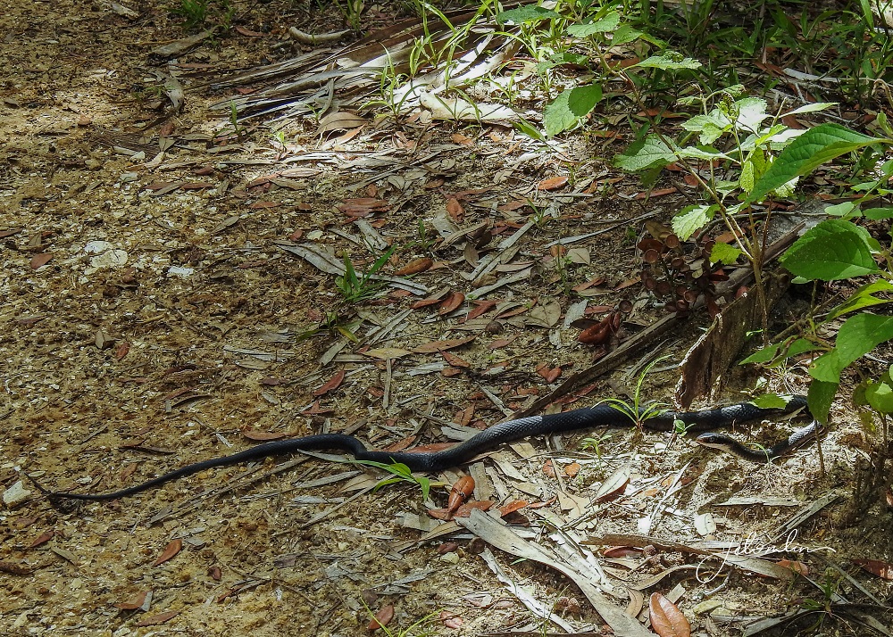 I saw a black racer sunning on the path