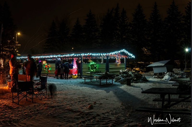 Later that afternoon, as we were walking home, we noticed guys putting up wooden signs around the town’s Christmas tree. “When are they lighting the tree?” we asked. “Today! Santa comes at 4 pm to light the tree, and about 3,000 people will be here,” was the reply.