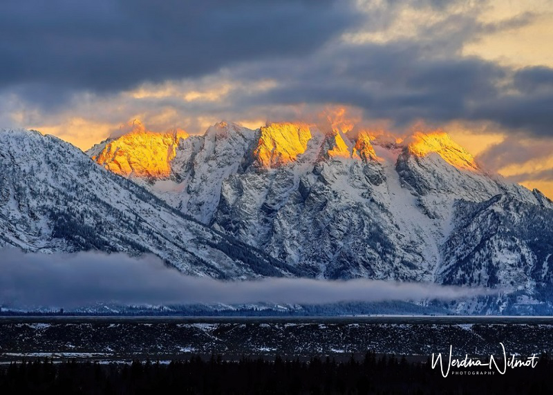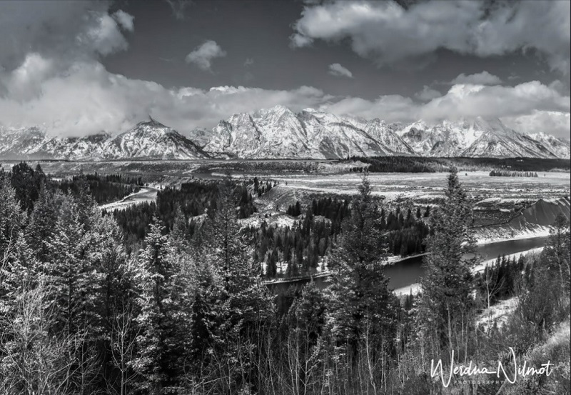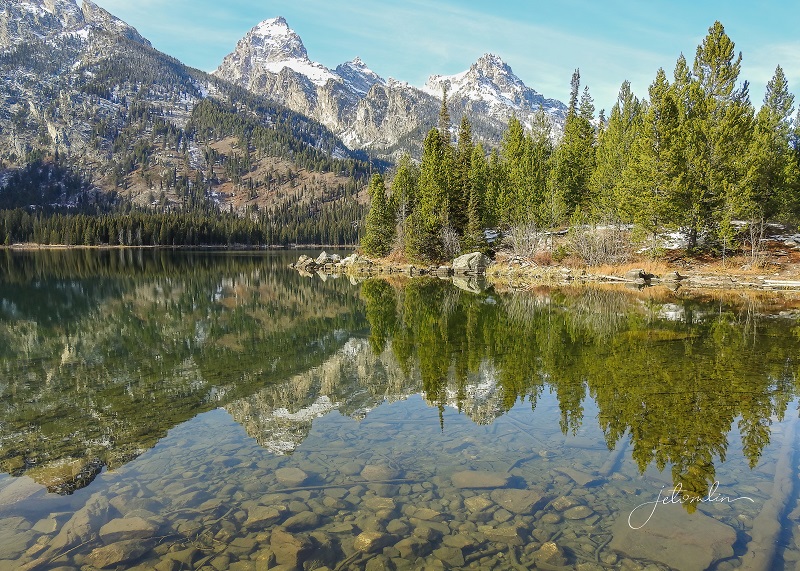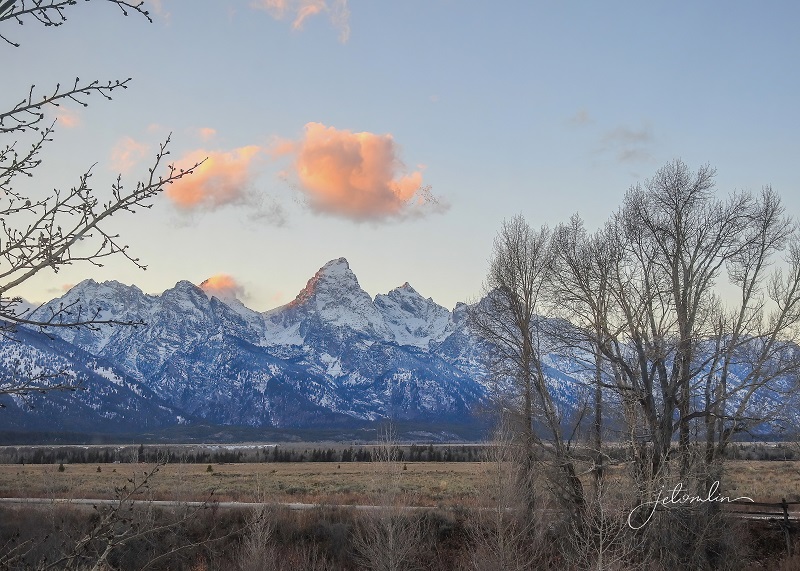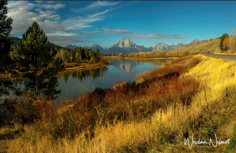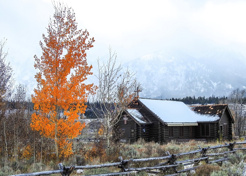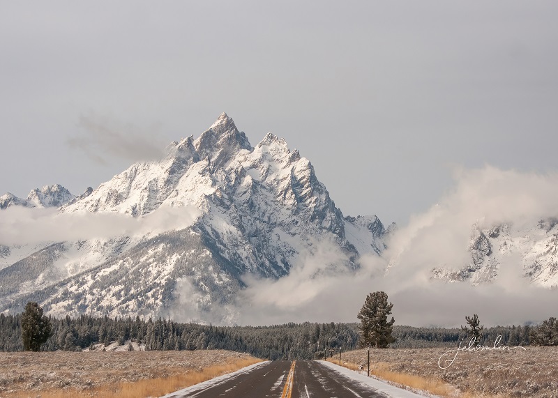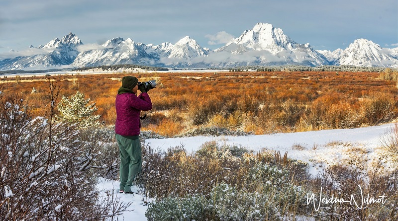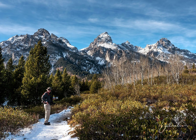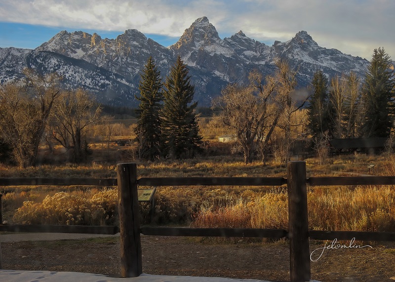 We had been in the Yellowstone area for a month and thus far blessed with unseasonably mild weather: warm days with plenty of blue skies and bright sunshine. But the forecast for the weekend of Oct 22 and into the following week did not look good. We decided to take advantage of what might be our last warm, sunny day and drive down to Grand Teton for some landscape shots.