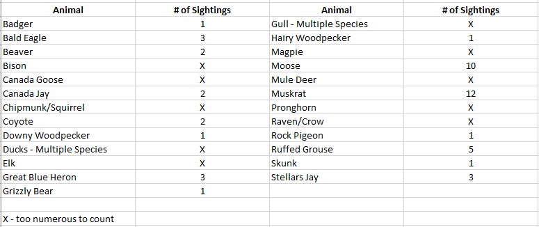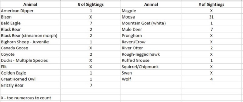 Of course, Yellowstone is also all about the wildlife! I kept a count of all the animals and birds we spied and for “too many to count” I put an “X.”