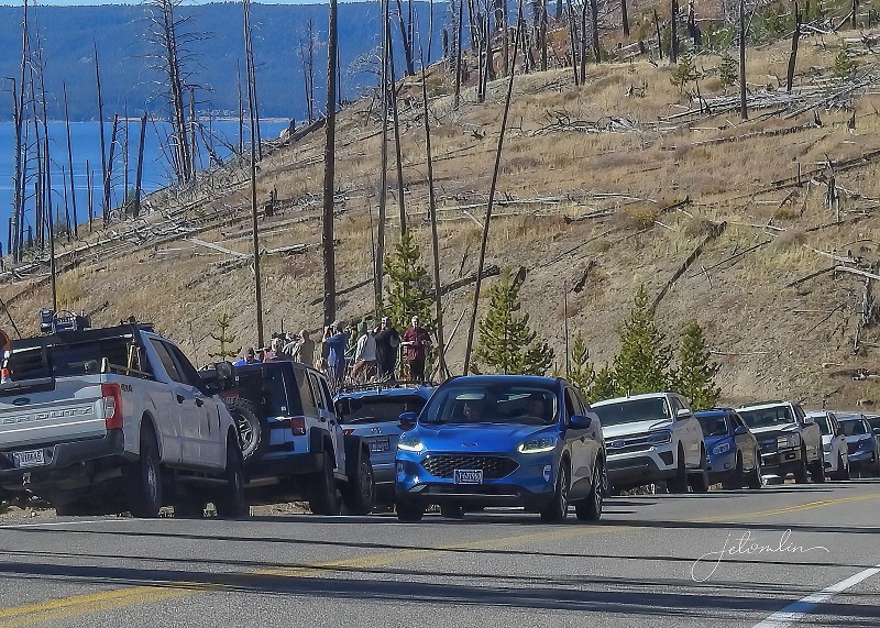 we waited in this line for 90 minutes while a herd of bison lumbered along at 2mph
