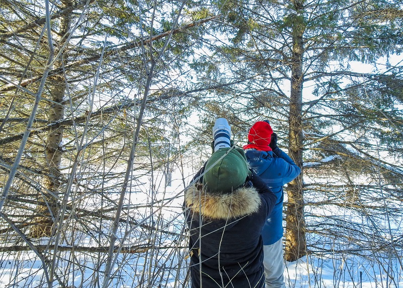 Before we arrived, Dan did his best to set my expectations: “Be aware they seem to be getting harder to find than usual, possibly due to the heavier-than-normal snow pushing them to new hunting areas, and severely sagging their favorite roost trees/bushes.”